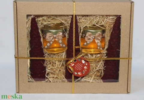 Céges karácsonyi ajándéknak szuper kis díszdoboz. Egyedi, egészséges, különleges, fincsi, fajta mézekkel és csodaszép bordó csavart méhviaszgyertyával kitűnő, ajándék akár kollégának, munkatársnak bármely családtagnak, barátnak, óvónőnek, tanárnőnek egyaránt.