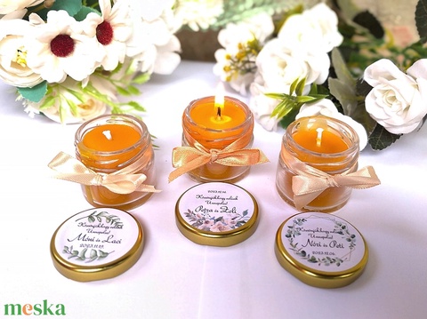 Esküvői gyetyás köszönet ajándék, méhviasz gyertyás köszönetajándék, esküvői köszönet ajándék