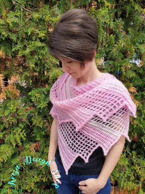 Kézműves horgolt csipke kendő - Lizard shawl (pink-rose)