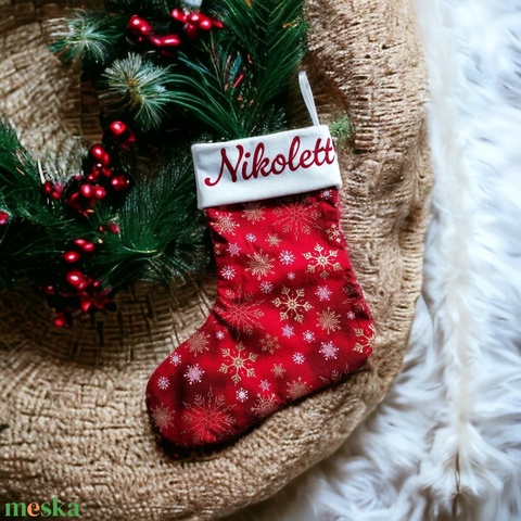 Névre szóló mikulás csizma, piros-fehér-arany színben