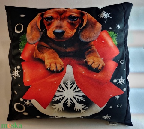 Kiskutyák karácsonyi hangulatban pihe puha diszpárna