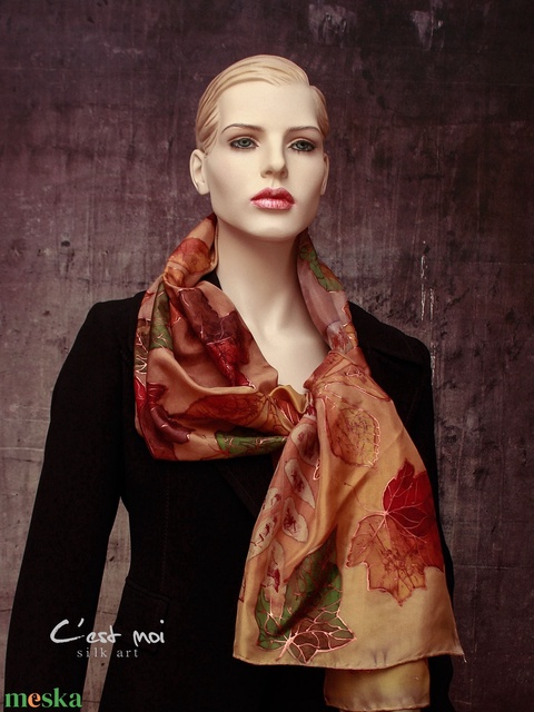 Őszi feleveles hernyóselyem kendő