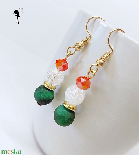 Alkalmi ásványfülbevaló matt zöld tigrisszemből, hegyikristályból üveggyönggyel
