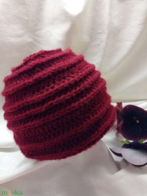 Vastag, meleg, horgolt, bordó sapka