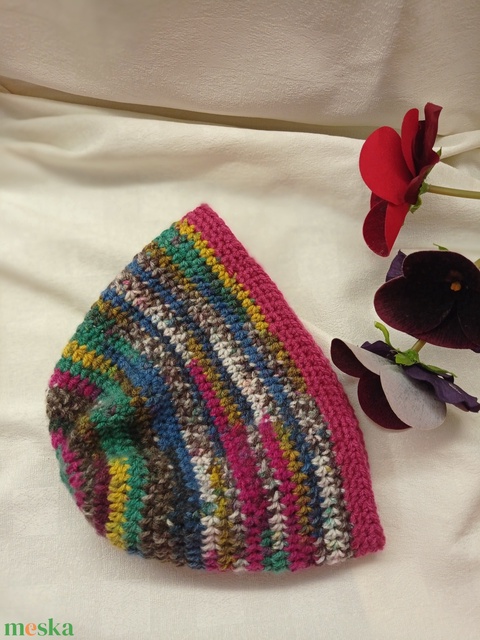 Horgolt, tarka sapka, virággal, vagy nélküle