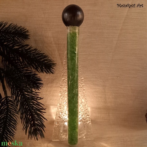 - Anyaga: mécsestartó, díszgömb, zúzott üveg, ragasztók, fúga, üveglap, kémcső
