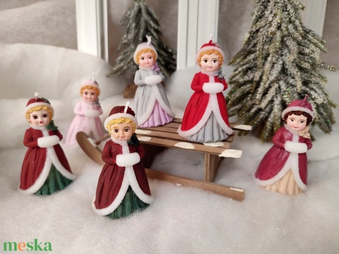 Kézműves karácsonyi gyertyák, retro lány télikabátban