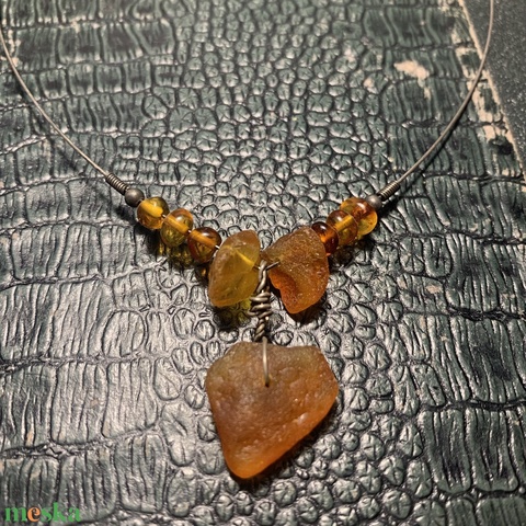 Borostyán nyaklánc, vintage valódi balti borostyán ékszer 1970-es évekből