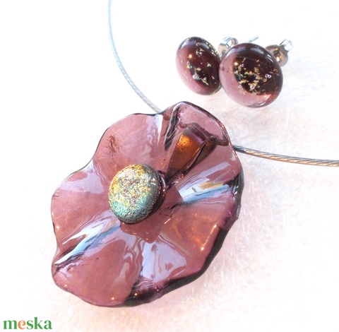 Mályvarózsa ékszerszett, ajándék névnapra születésnapra.