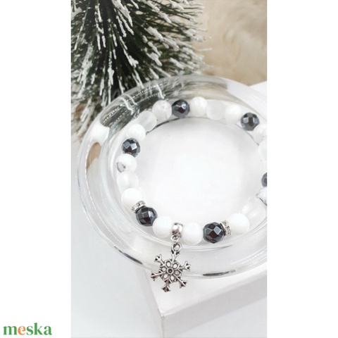 Ezüst hópihe medálos hematit kristálykarkötő