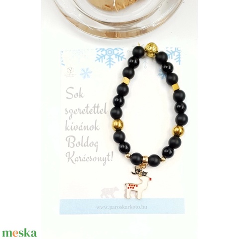 Fekete-Arany rénszarvasos ásványkarkötő üzenetkártyával