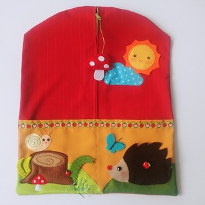 Tépőzárral záródó, kisegérrel díszített tároló a figuráknak.