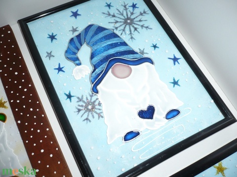 Téli manó, kékben - üvegre festett karácsonyi falikép