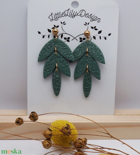 Zöld texturált leveles fülbevaló