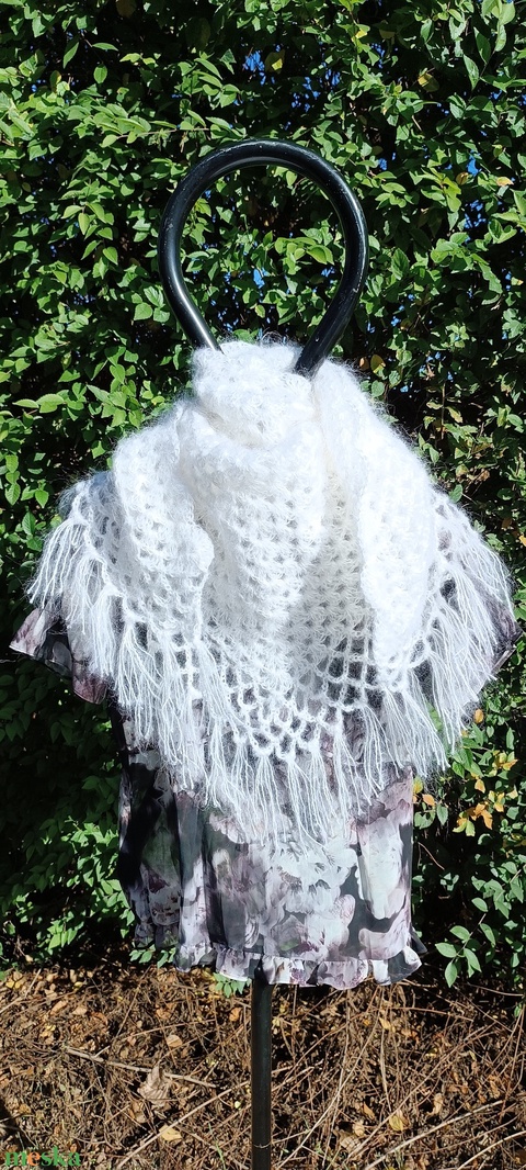 Hófehér, nagyméretű horgolt vállkendő