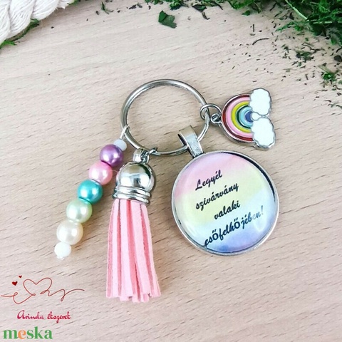 Legyél szivárvány rózsaszín bojtos üveglencsés kulcstartó táskadísz
