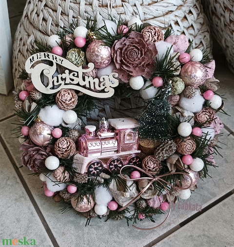 Vonatos adventi karácsonyi ajtódísz kopogtató 24cm koszorú