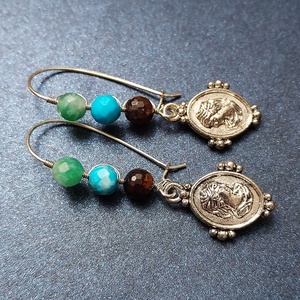 fülbevaló akasztó, ásványgyöngyök, tibeti ezüst figura