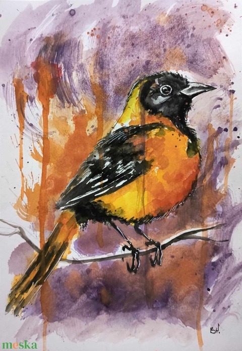 Sárgarigó akvarell festmény