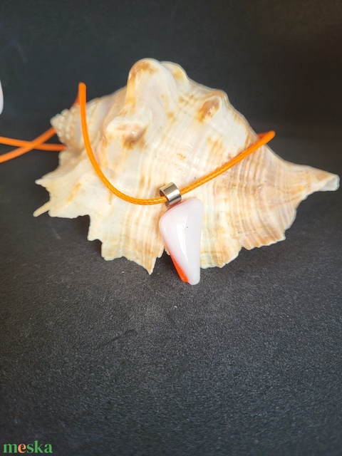 Fehér- narancssárga üveg medál, zsinór nyaklánccal