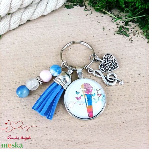 Mikrofon kék bojtos üveglencsés kulcstartó táskadísz