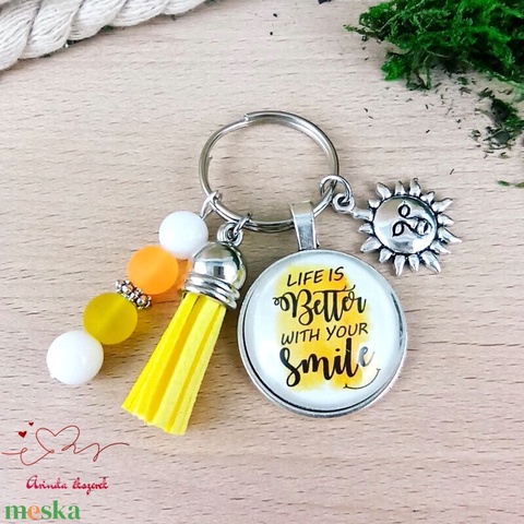 Life is better sárga bojtos üveglencsés kulcstartó táskadísz
