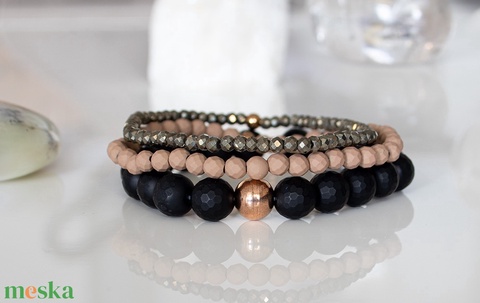 Ásvány karkötő szett - Ónix ásvány karkötő, Pirit ásvány karkötő, Hematit ásvány karkötő szett - Ásvány karkötő készítés - Kézműves ásvány karkötő - L É L E K hangoló ásvány karkötő