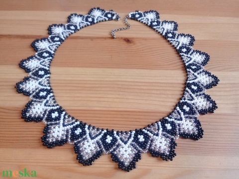 Fekete-fehér-ezüst ukrán mintájú nyaklánc