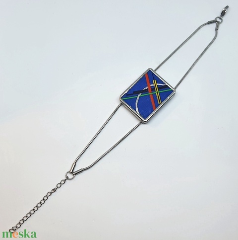 Moholy-Nagy kézzel festett Kék kompozíció - karkötő