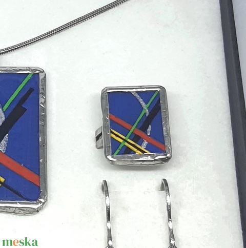 Moholy-Nagy kézzel festett Kék kompozíció - gyűrű