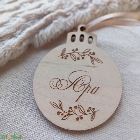 Névre szóló karácsonyfadísz fából, gömbdísz fából