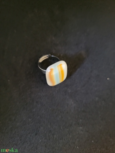Fehér alapon narancsos, kékes mintás üveg gyűrű