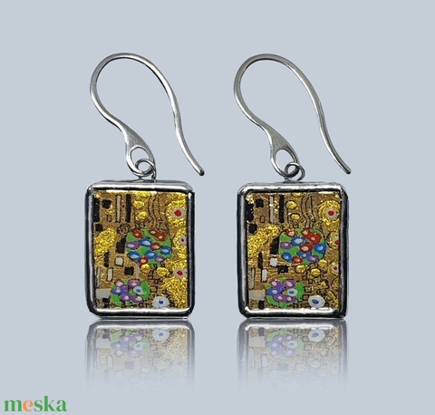 Klimt - Csók kézzel festett nagy lógós fülbevaló