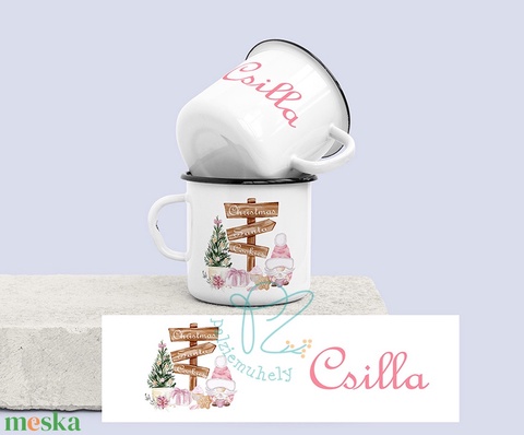 Egyedi Neves Karácsonyi Manós Zománc Bögre - Táblák