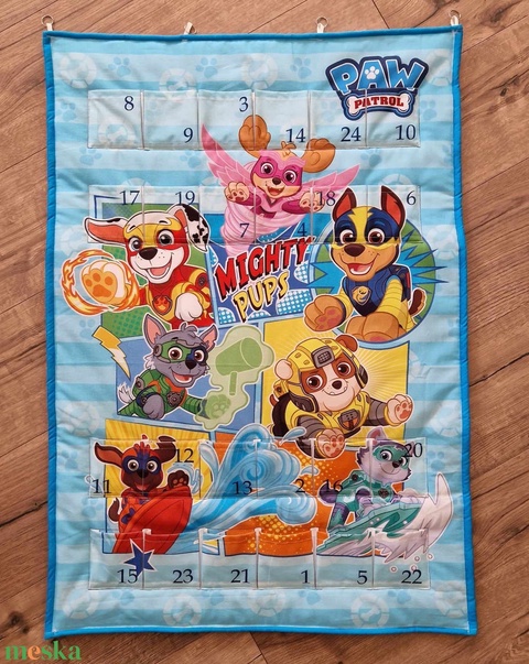 Adventi naptár,mancs-os,számozott zsebekkel