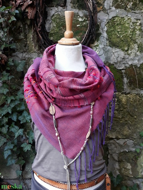 Mályvapiros őszilevél-kendő