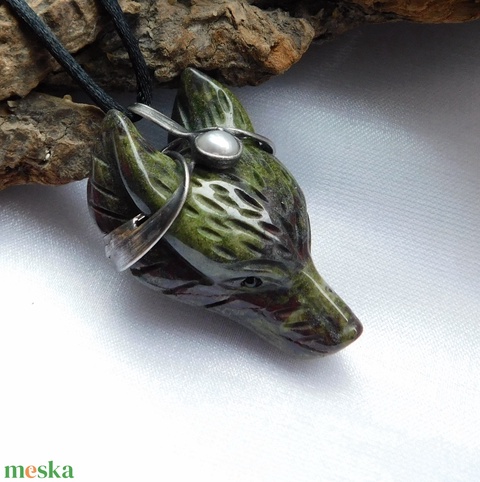 Sárkányvér jáspis farkas medál folyami gyönggyel