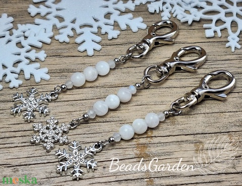 Strasszos Hópehely kulcstartó holdkő ásványból
