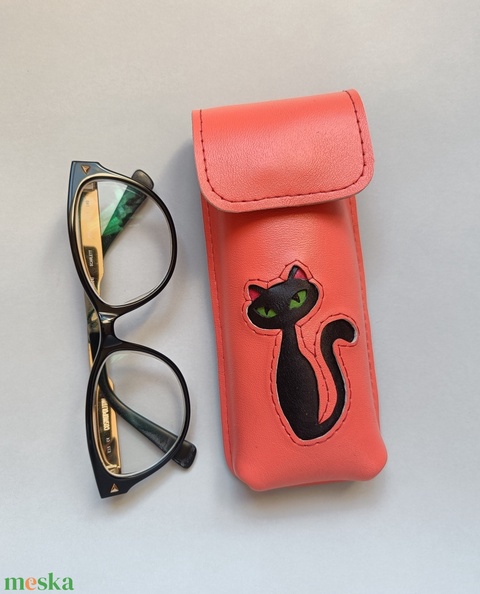Lazac fekete cica mintás bőr tolltartó, szemüvegtok