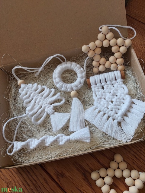 Makramé karácsonyi dísz 5 db-os dobozban