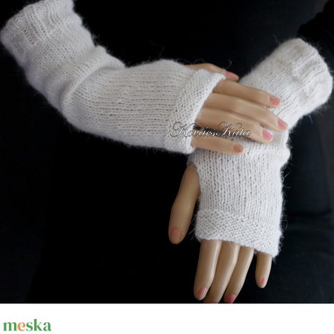 PILLE KESZTYŰ / angora - exkluzív kézzel kötött kesztyűszár, kézmelegítő / fehér KÉSZLETEN