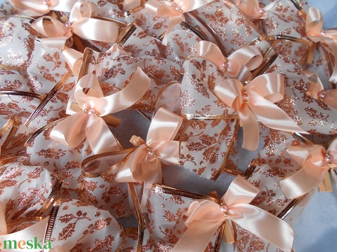 - Anyaga: facsipesz, akrilfesték, mintás textilszalag, szatén szalag, gyöngy