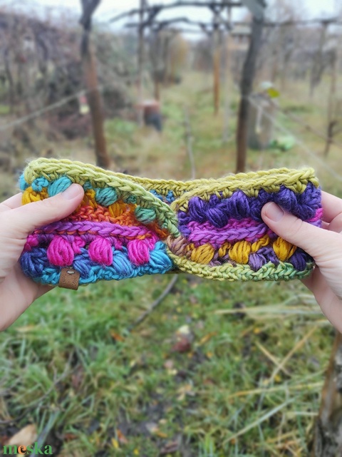 SZIVÁRVÁNY horgolt, bogyós fülvédő
