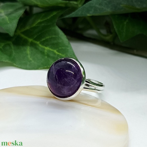 Ametiszt ásvány kaboson gyűrű