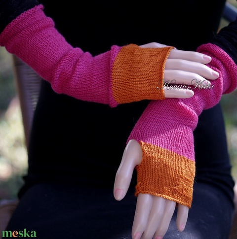BOSZI-KESZTYŰ / perlata - exkluzív kézzel kötött kesztyűszár, kézmelegítő / fukszia + narancs