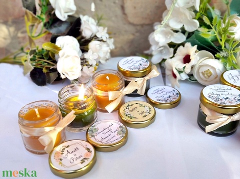 Esküvői gyetyás köszönet ajándék, méhviasz gyertyás köszönetajándék, esküvői köszönet ajándék