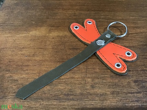 Szitakötő, kulcstartó táskadísz, valódi bőr, szegecselt kulcstartó
