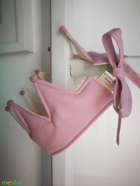 Textil korona, fejdísz pompon - pasztell rózsaszín