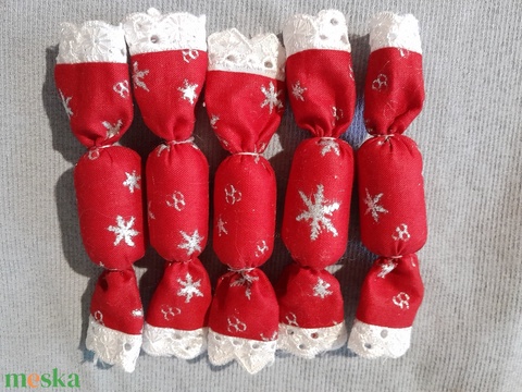 Piros alapon Ezüst Csillag mintás Textil szaloncukor