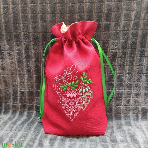 - Anyaga: szalag, selyem hímzőcérna, dekor vászon, bélés szövet
